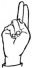 На ћирилици написано НЕДА БАДРИЋ састоји се из 10 слова [?]. Исписано ћириличном једноручном азбуком за глувонеме: